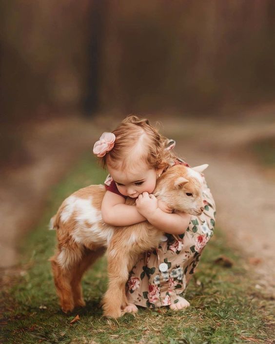 تصویر دختربچه که بره ای رادر آغوش گرفته است